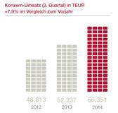 ersten neun Monaten um 8,4% auf TEUR 49.883 (Q3-2013: TEUR 45.998)