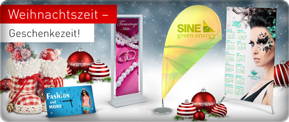 Die Rotweinflasche für den Geschäftspartner zu Weihnachten ist sicher eine nette Geste. Wie wäre es in diesem Jahr mit einem Kalender als Tischdisplay, als Poster auf Aluverbund, Hartschaum oder edlem Acrylglas oder als Stoffbanner? So haben Ihre Geschäftspartner das ganze Jahr etwas von "Ihrem" Weihnachtspräsent und Ihr Logo ist stets im Blick.