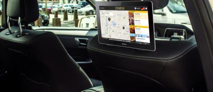 sich mobiles Infotainment via Tablet im Innenraum von Taxen in den