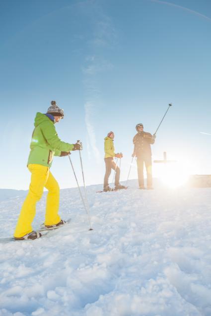 Bildtext: Morgendliche Schneeschuhwanderung mit dem Pistenbutler.