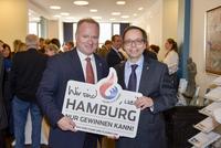 Bei einem Empfang in den Räumen von Schomerus&Partner unterstrich der Hamburger Sportsenator, dass allein schon die Bewerbung für die Olympischen Spiele weltweit große Aufmerksamkeit für die Hansestadt bewirke.