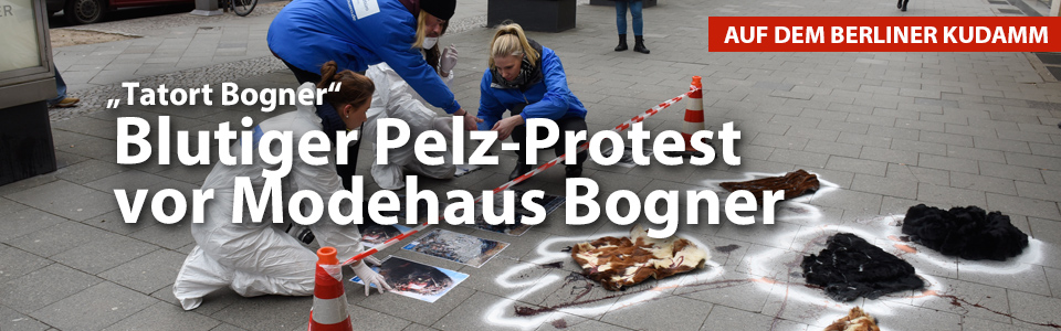 Dagegen haben heute die Aktivisten des Tierschutzvereins Deutsches Tierschutzbüro auf dem KuDamm in Berlin demonstriert. Den Gehsteig vor der "Bogner" Filiale verwandelten sie in einen Tatort, Ermittler in weißen Schutzanzügen untersuchten die Blutspuren und die Häute der Opfer.