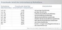 Die laut Studie besonders gefährdete Firmengruppe verfügt über einen Bonitätsindex der Schulnote 4,5 bis 6,0. Das bedeutet, dass diese Unternehmen ihren Zahlungsverpflichtungen mit hoher Wahrscheinlichkeit binnen der nächsten zwölf Monate nicht nachkommen können. Allerdings bedeutet der statistische Wert explizit nicht, dass die betroffenen Betriebe alle Insolvenz anmelden müssen. Er sagt lediglich aus, dass die Betroffenen über eine ausgeprägt schwache Bonität verfügen, also hohen Risiken unterworfen sind. Der Großteil (48,2 Prozent) der Unternehmen weist in Deutschland aktuell ein unterdurchschnittliches Ausfallrisiko aus.