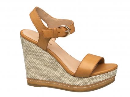 Keilabsatz ist die Sandalette besonders bequem, streckt das Bein der
