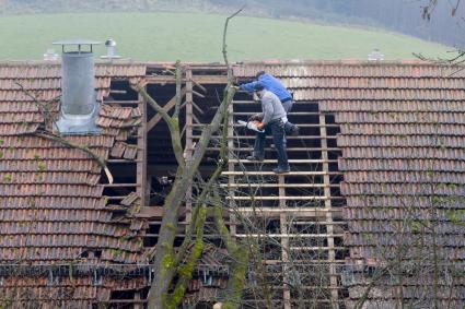 Nachbargebäude ebenso durch das Unwetter beschädigt wurden.