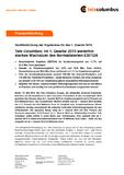 Die Tele Columbus Gruppe, der drittgrößte deutsche Kabelnetzbetreiber, ist mit Zuwächsen in allen relevanten Kennzahlen in das Geschäftsjahr 2015 gestartet. Der Umsatz stieg im 1. Quartal 2015 im Vorjahresvergleich um 2,2 Prozent auf 53,6 Millionen Euro. Das normalisierte EBITDA erhöhte sich im 1. Quartal 2015 deutlich um 11,7 Prozent auf 24,4 Millionen Euro im Vergleich zum Vorjahreszeitraum. Dieser erhebliche Anstieg unterstreicht die weiterhin kraftvollen Entwicklungsimpulse für das Unternehmen. Die operative Marge stieg im 1. Quartal 2015 auf 45,5 Prozent des Umsatzes gegenüber 41,6 Prozent im 1. Quartal 2014 an. Gleichzeitig investiert Tele Columbus weiter kräftig in seine Netze und Technologien. Dies spiegelt sich im 1. Quartal 2015 in einem Investitionsaufwand von 15 Millionen Euro wider - mehr als das Doppelte als im 1. Quartal 2014 (6 Millionen Euro).