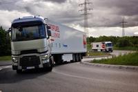 Auf einer anspruchsvollen Teststrecke durch den Westerwald zeigten beide Fahrer, dass sie ihren Job beherrschen. Es galt, einen teilbeladenen Drei-Achs-Sattelzug, der von einem Renault Trucks T High Sleeper Cab "Fuel Saver" mit 480 PS gezogen wurde, mit geringem Kraftstoffverbrauch bei gleichzeitig möglichst hoher Durchschnittsgeschwindigkeit ins Ziel zu pilotieren.