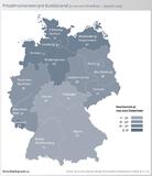 Wie schon in den vergangenen Jahren werden im Norden der Republik mehr Privatinsolvenzen angemeldet als im Süden. Am meisten Privatinsolvenzen gab es mit 54 Fällen je 100.000 Einwohner in Bremen. Es folgen Niedersachsen (46 Privatinsolvenzen je 100.000 Einwohner) und Hamburg (45). Über dem Bundesdurchschnitt von 33 Privatinsolvenzen je 100.000 Einwohner liegen auch das Saarland (44), Schleswig-Holstein (43), Mecklenburg-Vorpommern (42), Sachsen-Anhalt und Brandenburg (je 39) sowie Nordrhein-Westfalen (34). Erstmals gab es in Thüringen die wenigsten Insolvenzen. Lediglich 22 von 100.000 Einwohnern mussten eine Privatinsolvenz anmelden. Geringe Werte meldeten ebenfalls Baden-Württemberg und Bayern (je 25). Bei der absoluten Betrachtung der Zahlen stehen die bevölkerungsreichen Bundesländer an der Spitze. Allen voran Nordrhein-Westfalen mit 5.982 Insolvenzen. Es folgen Niedersachsen (3.592), Bayern (3.140) und Baden-Württemberg (2.676).