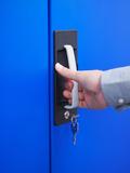 Durch die Drehung des Schlüssels auf der Frontseite in einem 90-Grad-Winkel nach links oder rechts entriegelt das System und der Griff wird zur Betätigung freigegeben. Der Benutzer ist dann in der Lage, den Griff in seine Richtung zu ziehen. Dabei fährt das Gestänge ein und der Riegel wird zurückgezogen. Ein Sperrteil hält beide Teile in der geöffneten Position. Nach der Betätigung springt der Griff eigenständig in seine Ausgangssituation zurück, sodass er nicht absteht. Wird die Tür wieder zurückgedrückt, fallen und Gestänge und Riegel durch einen Kontakt mit dem Abfragestift zurück in die Verschlussposition, so dass das Schloss die Tür automatisch verriegelt.