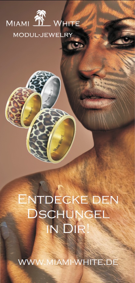(IINews) - Hilden 01.07.2015 ? Miami White® informiert: Es geht wieder los - das Camp für leidende Promis nimmt kein Ende und startet wieder im TV. Die Promi-Damen werden wieder jammern, leiden, weinen und auf Kommando Maden essen. Warum tut man sich das an? Es gibt einfachere und vor allem elegantere Methoden, um einen Mann auf seine Qualitäten als Amazone aufmerksam zu machen. So zumindest die Devise der Schmuckmanufaktur Miami-White High-Life Jewelry http://www.miami-white.de , die auch auf das Dschungelmotto gesetzt hab en. Ihre neue limitierte Kollektion von Schmuckringen mit ungewöhnlichen und detaillierten Raubtierfellprints ist schon seit längerem ein echter Renner in Deutschland. Zu haben in über 500 Juwelieren und im Online-Shop.