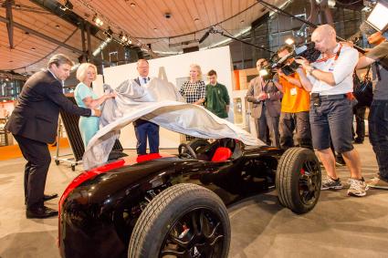 "Bundesministerin Wanka und Ministerpräsident Weil enthüllen Kleinrennwagen auf der IdeenExpo (FOTO)"