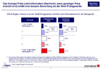 Weiterhin wurden in der Studie MobilitätsTRENDS zwei unterschiedliche Preismodelle untersucht: Zum einen das neue Shell-Preismodell (registrierte Shell ClubSmart Mitglieder zahlen höchstens 2 Cent/Liter mehr als an der billigsten Markentankstelle im Umkreis der Shell Station), zum anderen eine Smartphone-App bzw. ein Onlinetool, bei dem der Kunde einen Wunsch-Benzinpreis abgeben kann (sobald dieses ?Preislimit? an vorab vom Kunden definierten Tankstellen erreicht wird, erfolgt eine Benachrichtigung). Während das Preismodell von Shell überwiegend kritisch bewertet wird (nur 26 % der Befragten finden dieses interessant, 47 % weniger oder gar nicht interessant), erhält das Modell des Preislimits eine bessere Bewertung. Jeder dritte Befragte zeigt hier ein Interesse (38 % finden dies weniger oder gar nicht interessant). Trotz allem spricht daraus auch eine insgesamt starke Skepsis der Verbraucher.