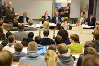 Richtig ins Schwärmen kam auch Dieter Ammer. Als erfahrener deutscher Unternehmenslenker (Tchibo, Beck?s, Conergy) hat er seine Wurzeln in Namibia und Südafrika, und betreibt dort weiterhin eigene Firmen. Gerade am Beispiel der sogenannten Generika auf dem Arzneimittelmarkt wie auch in der gesamten Drogeriesparte böten die afrikanischen Märkte hoch spannende Perspektiven. In diesem Enthusiasmus stand auch Cornelius Gerber, lange Jahre CEO von Kuehne&Nagel in Nichts nach. Beide ermutigten die anwesenden Studierenden, sich auf die Erfahrung einzulassen, die ein Auslandssemester oder -praktikum auf dem Kontinent böten. Afrika, so die Experten, sei so ein vielschichtiger Kontinent, der für alle Arten von Produkten und Dienstleistungen Märkte böte, von Konsumartikeln für den nigerianischen und südafrikanischen Markt, über Minenbau und erneuerbare Energien im Norden des Kontinents bis hin zu den IT-Märkten im sogenannten ?Savannah Valley? (in Anlehnung an das amerikanische Silicon Valley) in Ostafrika. Den gesamten Kontinent zeichne aus, dass es sehr ehrgeizige, fleißige und erfolgshungrige junge Menschen gäbe, die auf eine Gelegenheit warteten. Zudem biete die Entwicklung auch den Menschen in Afrika eine langfristige Perspektive in ihren Heimaltländern.