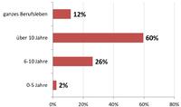 Knapp drei Viertel sind bereits mehr als 10 Jahre im Unternehmen beschäftigt, davon 12 % schon ihr ganzes Berufsleben.