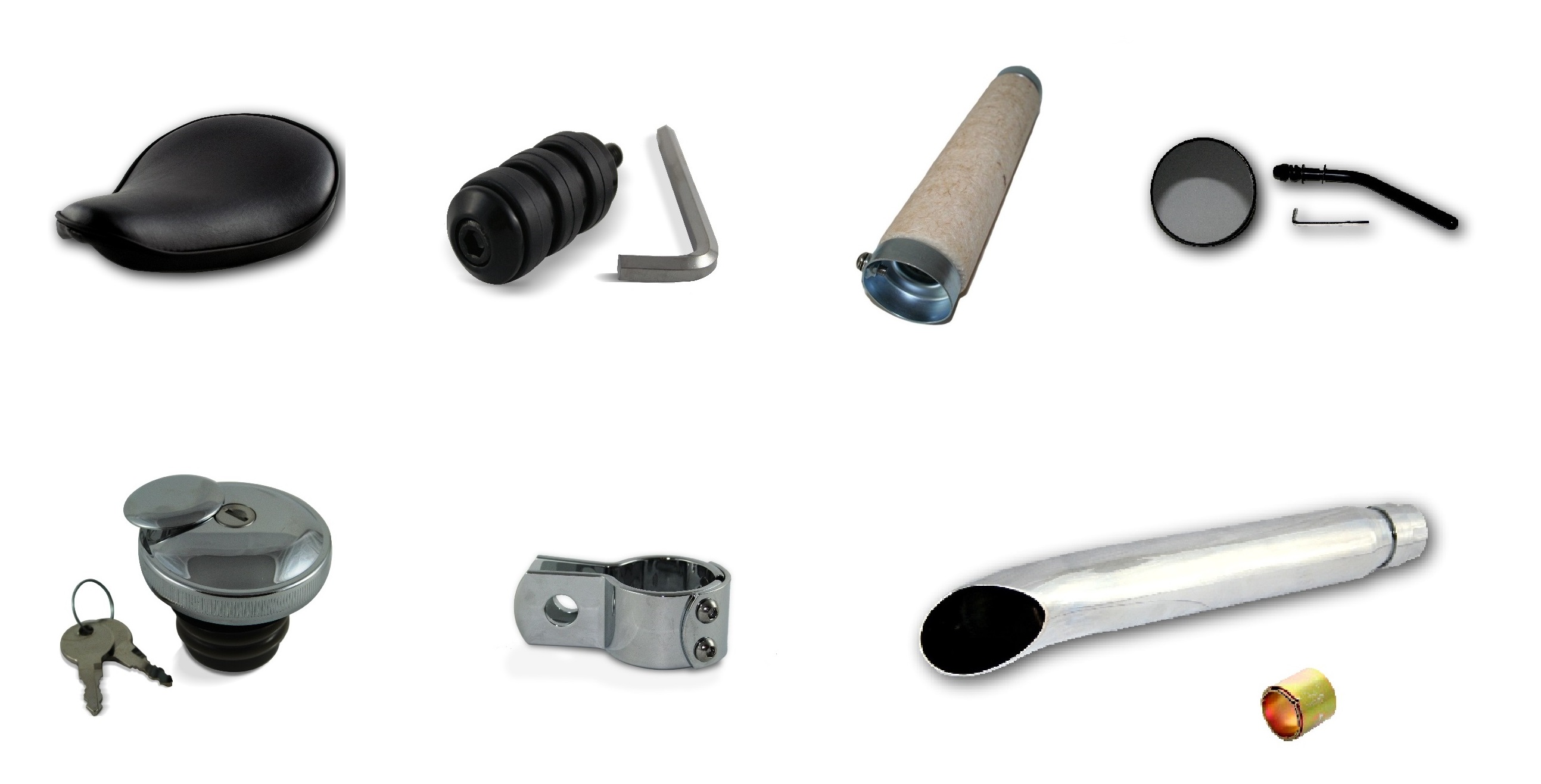 Zubehör für Custom Bikes in übersichtlichen Kategorien erklicken bzw. europaweit liefern lassen