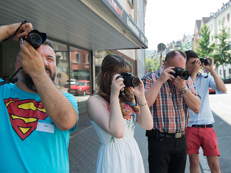Im Einsteigerkurs Fotografie lernen die Einsteigerinnen und Einsteiger in einer kleinen Gruppengröße von maximal sechs Teilnehmerinnen und Teilnehmern theoretische, aber auch praktische Grundlagen im Umgang mit der Kamera.