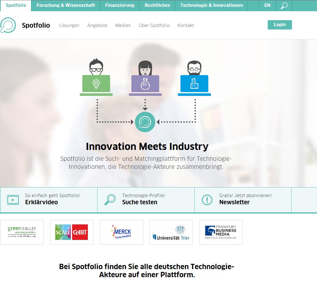 Die Spotfolio Such- und Matchingplattform für Technologie-Innovationen befindet sich im Internet unter www.spotfolio.com.