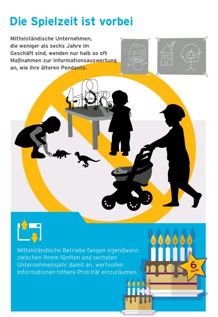 Über ein Drittel (38 Prozent) der jüngeren Firmen weiß nicht, wie Informationen durch das Unternehmen fließen und wo sie den meisten Wert generieren. Im Gegensatz dazu stehen 22 Prozent jener Unternehmen, die sechs Jahre und älter sind. Gleichermaßen wissen 35 Prozent der jüngeren Unternehmen nicht, wie sie den Wert von Informationen für ihr Unternehmen ermitteln können, während 78 Prozent der Unternehmen, die inzwischen das sechste Jahr erreicht haben, dies tun.