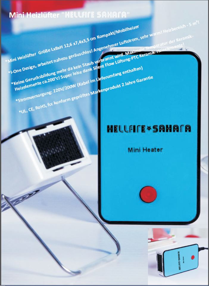 "Hellfire Sahara" so der klangvolle Name des neuen Wintertrends. Was verbirgt sich dahinter haben wir uns gefragt und haben recherchiert. Ein kleiner tragbarer persönlicher Heizlüfter neuester Bauart.