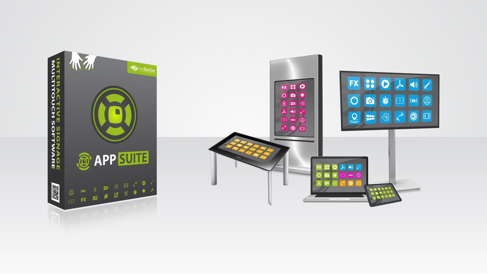 Was ursprünglich mit individuellen Kunden-Lösungen für große Touchscreens begann, hat eyefactive zu einer standardisierten Software-Plattform weiterentwickelt. Ein ähnliches Prinzip, wie es die bekannten Anbieter im mobilen Bereich auf Smartphones und Tablets erfolgreich etabliert haben.