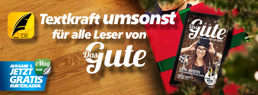 Über die Feiertage verschenkt das eMagazin"Das Gute" die iPad-App"Textkraft Deutsch" im Wert von EUR7,99 an seine Leser.