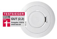 In der Produktkategorie ?Rauchmelder mit Lithium-Langzeitbatterie? hat die Stiftung Warentest zehn Melder unter die Lupe genommen. Das Modell Ei650 wurde hier mit dem Qualitätsurteil ?Gut? und der Gesamtnote 2,2 als bester Melder bewertet. Das gleiche gilt für ?Funkvernetzbare Rauchmelder mit Lithium-Langzeitbatterie?. Der Rauchmelder Ei650W mit Funkmodul Ei650M erzielte die Gesamtnote 2,2 und ist ebenfalls Testsieger in dieser Kategorie. Darüber hinaus hat die Stiftung Warentest den großen, vom Boden bedienbaren Stummschaltknopf der Ei Electronics Rauchmelder besonders positiv hervorgehoben.