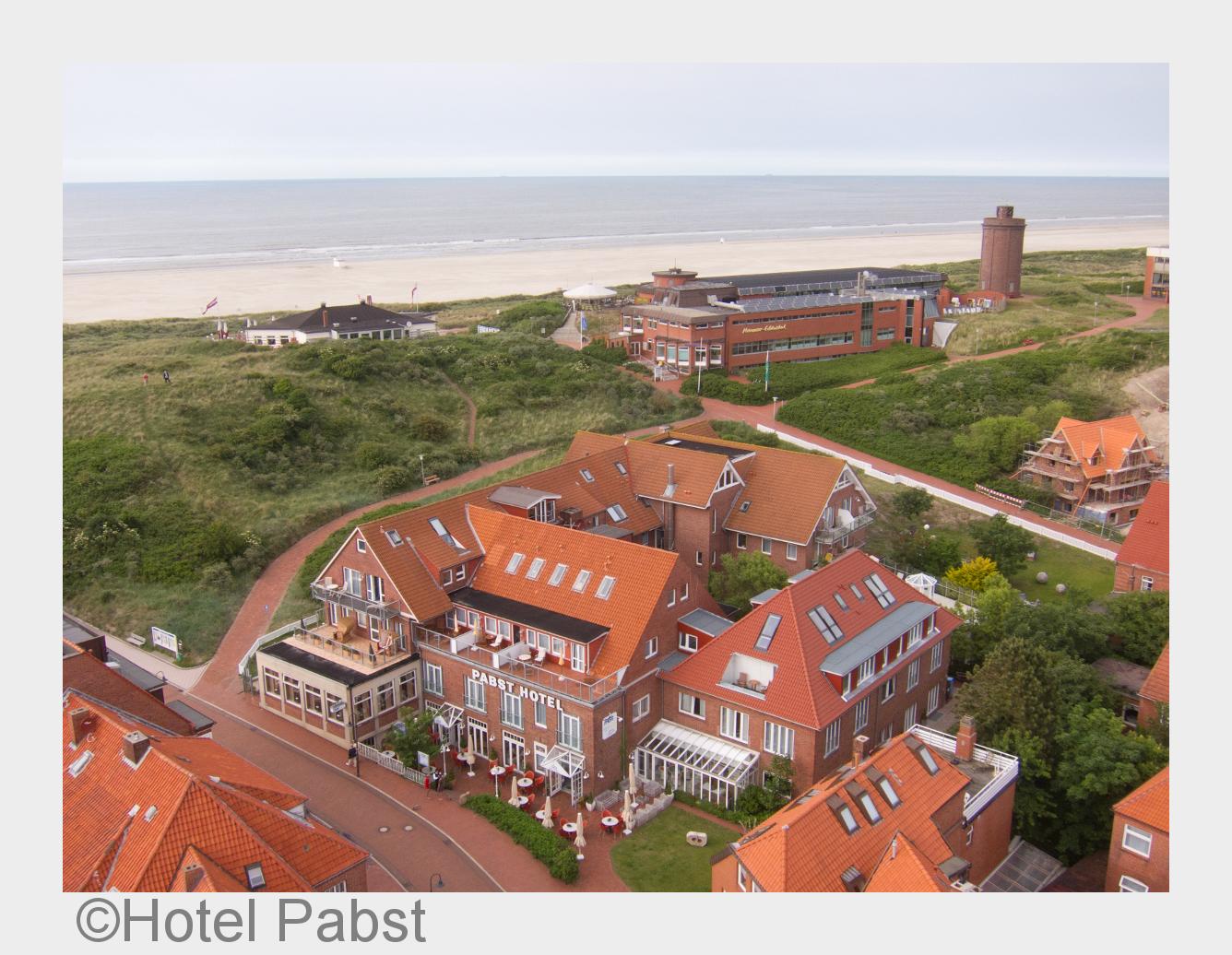 Seit 130 Jahren heißt das Traditions-Hotel Pabst seine Gäste auf Juist willkommen und viele Gäste kommen schon hierher so lange sie denken können; nun mit den Kindern und Enkeln. Das Hotel Pabst bietet neben der einmaligen Lage, nämlich "ganz nah dran" an den Stranddünen und nur wenige Schritte vom Juister Urlaubsgeschehen, 56 modern und komfortabel eingerichtete Zimmer, Appartements und Suiten für bis zu 120 Personen, zwei Restaurants, eines exklusiv für die Hotelgäste und -klein & fein- das "Rüdiger´s" für den à-la-Carte-Gast, eine Bar sowie einen kleinen Tagungs- und Veranstaltungsbereich. Der großzügige Wellnessbereich mit Blick auf die Dünen verfügt über vier verschiedene Saunen und einen großen Innenpool. Im behaglichen Ruhebereich kann man sich wunderbar entspannen. Das Hoteleigene Beauty-Team ist spezialisiert u. a. auf Thalassobehandlungen.