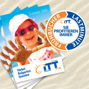 (IINews) - ITT setzt neben den unterschiedlichen Frühbucher-Vorteilen (Quelle: ITT Katalog Sommer 2016) auf tagesaktuelle Preise. Das Unternehmen geht bei dem Modell mit der Zeit, weil so alle Informationen und Konditionen aktuell überprüft und weitergegeben werden.