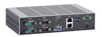 Das kompakte System ist mit zahlreichen Anschlussmöglichkeiten ausgestattet. Es verfügt unter anderem über zwei Gigabit Ethernet, vier COM-Anschlüssen (einen RS-232/422/485, drei RS-232), drei USB3.0, einen USB 2.0 sowie einen Audio- (MIC-in/Line-out) und einen VGA-Anschluss. Der HDMI 2.0-Anschluss unterstützt 4K-Auflösung und ermöglicht eine Dual-View-Verwendung.