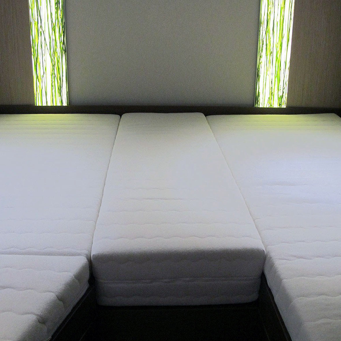 Die Lösung: Ein Topper für die Matratzen. Das heißt, auf die Matratzen wird eine 5 cm starke viscoelastische Auflage gelegt, die den Schlafkomfort enorm steigert und das Bett im Camper zu einem komfortablen Nachtlager macht. Die Hersteller der Wohnwagen und Wohnmobile bieten meist keine bessere Matratzenqualität als alternative Ausrüstung an. Es lohnt sich nicht, die Standard-Erstausstattung muss genügen. Nun gibt es ein paar wenige kleine Matratzenhersteller, die Lösungen für Camper anbieten. Preislich können diese Lösungen aber nicht mit dem Angebot von bettwaren-shop.de konkurrieren.