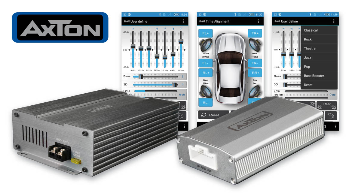 Ein Novum: Bei AXTONs neuen Digital Endstufen fürs Auto werden die Klangeinstellungen des integrierten digitalen Soundprozessorsüber das Smartphone gesteuert.