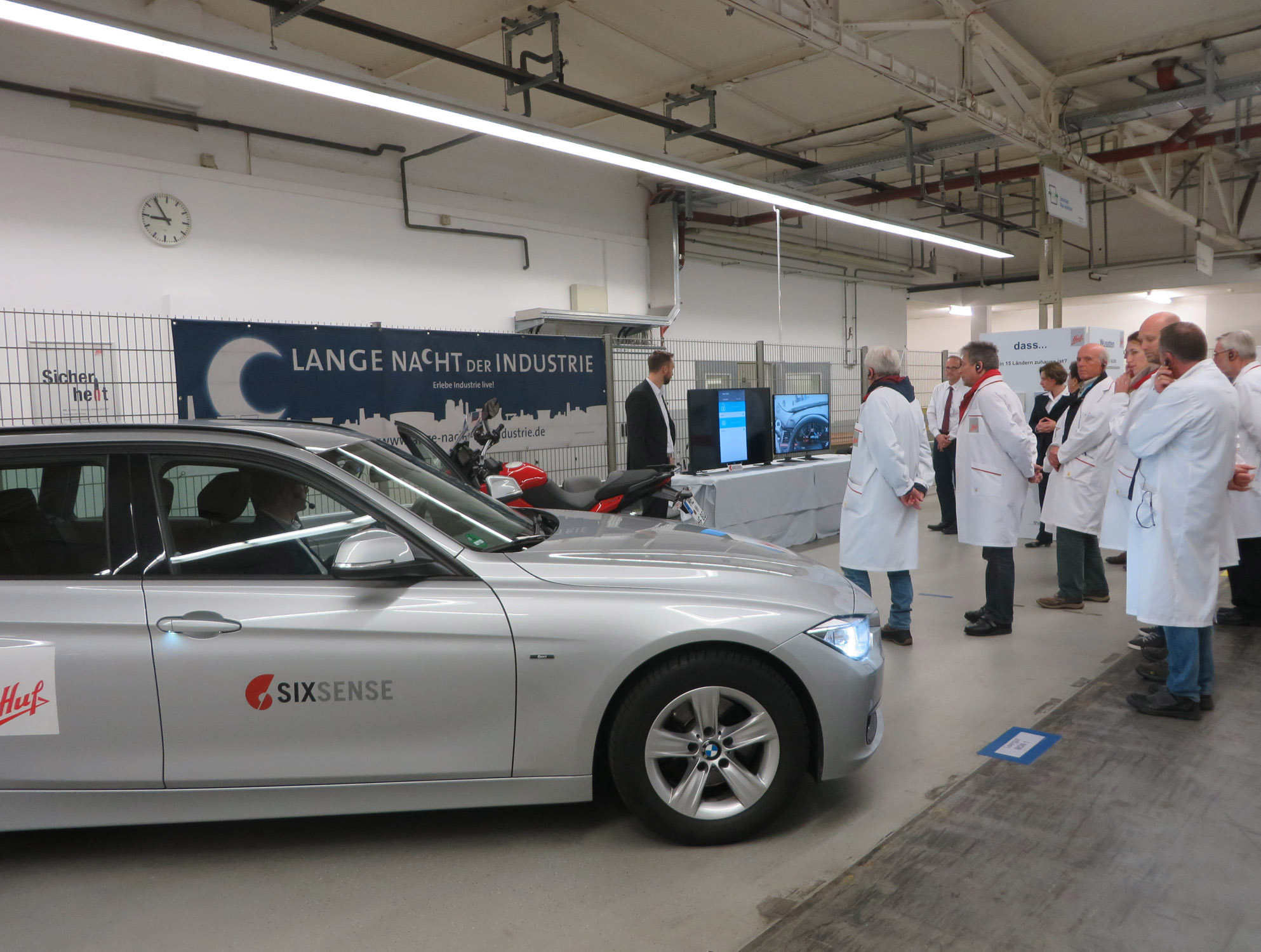Während der "Langen Nacht der Industrie" bei Huf erhielten 100 Interessenten die Möglichkeit, das im Jahre 1908 gegründete Unternehmen hautnah zu erleben. Die Besucher staunten über das, was sich hinter den sonst verschlossenen Werkstoren verbirgt: Neben Montagebereichen, der Gießerei und der Ausbildungswerkstatt präsentierte Huf zwei Konzeptfahrzeuge, an denen die Besucher die Produkte und Innovationen des Unternehmens testen konnten. Einen Ausblick in die Zukunft gab die Huf-Autoschlüssel-App, mit der man das Auto nicht nur öffnen und starten kann, sondern auch Fahrberechtigungen vergibt. Der Automobilzulieferer Huf ist das einzige Unternehmen in Velbert, das sich an der Initiative der Industrie- und Handelskammer (IHK) beteiligt. Ziel ist es, einer interessierten Öffentlichkeit die Arbeits- und Ausbildungsmöglichkeiten in einem modernen Industrieunternehmen an einem Abend live zu zeigen.