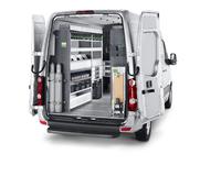 bott konfiguriert die modulare Fahrzeugeinrichtung individuell nach Bedarf. Auf diese Weise organisiert die bott vario Fahrzeugeinrichtung den Stauraum perfekt, sorgt für ein übersichtliches Platzangebot und bietet flexible Möglichkeiten zur Ladungssicherung. So lässt sich sämtliches Equipment sicher verstauen und der Handwerker kann ergonomisch günstig darauf zugreifen. Als Neuheit präsentiert bott eine Zurrschiene, die sich senkrecht an den tragenden Teilen der bott vario Fahrzeugeinrichtung integrieren lässt.