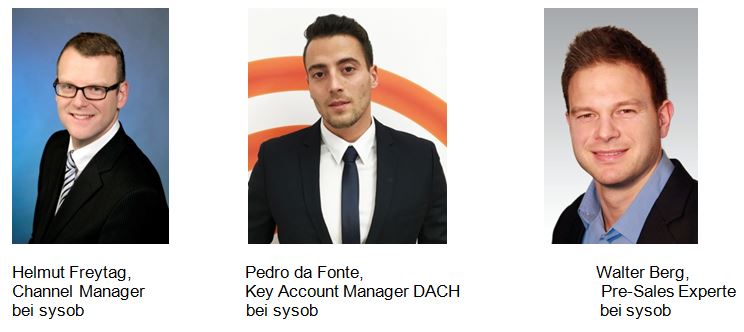 (IINews) - Schorndorf, 16. Februar 2016 - Die sysob IT-Distribution (http://www.sysob.com/) startet 2016 mit einem verstärkten Mitarbeiterstamm. Helmut Freytag, Pedro da Fonte und Walter Berg unterstützen ab sofort als Channel bzw. Key Account Manager und Pre-Sales-Experte. Mit der personellen Aufstockung will sysob seine Partnerbetreuung weiter ausbauen und noch persönlicher gestalten. Regelmäßige Zertifizierungen stellen zudem sicher, dass die sysob-Mitarbeiter ihre Kunden stets auf dem neuesten Stand der Technik beraten.
