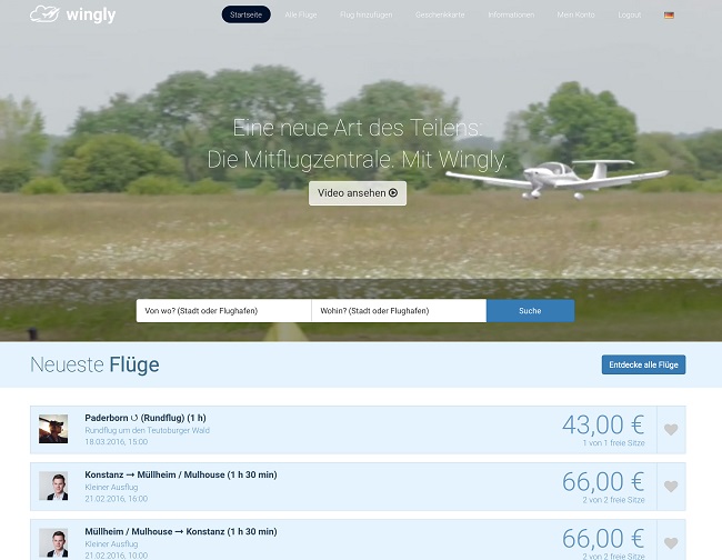 Eine Mitflugzentrale für Deutschland: Wingly hebt ab!