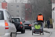 ?Kinderfahrradanhänger sind ziemlich niedrig. Schon bei normaler Witterung übersehen sie Autofahrer oft bei Abbiegemanövern. An dämmerigen Wintertagen ist eine hohe Sicherheitsfahne am Wagen umso mehr ein Muss. Am besten in grellem Orange?, sagt Philip Puls, Technischer Leiter bei TÜV SÜD. Wimpel mit den beliebten, aber auch dunkleren Kindermotiven sind in der düsteren Jahreszeit nur zweite Wahl.