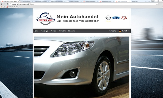 Damit sich der Autohandel einen Eindruck über die Leistungsfähigkeit des Homepage-Baukasten verschaffen kann, wurde unter http://musterwebseite.webmobil24.com/ eine Muster-Webseite erstellt, die jeder Interessierte aufrufen kann.
