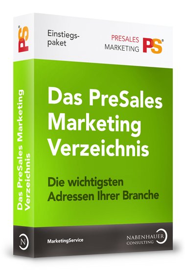 Das Verzeichnis wird unter http://service.presalesmarketing-verzeichnis.com/ beauftragt. Angeboten wird die vollständige Dienstleistung über die Nabenhauer Consulting, Allround-Unternehmensberatung mit Fokus auf die voll automatisierte Vertriebsanbahnung. Die Erstellung des Branchenverzeichnisses beinhaltet neben der technischen Installation auf einem Webserver auch das Einfügen von Logo- und Grafikmaterial für individuelles Branding, das Anschreiben von 100 wichtigen Branchenteilnehmern sowie das Einfügen der mit der Veröffentlichung einverstandenen Branchenteilnehmer.