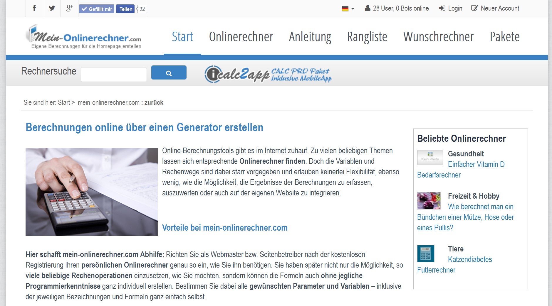 Ein beliebtes Hilfsmittel der Gestaltung von Websites sind Onlinerechner, die für eine lange Verweildauer und Interaktion der Besucher sorgen.