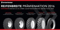 (PresseBox) - Im März 2016 ist in Deutschland der Startschuss für die Prämienaktion ?REIFENBREITE? der Traditionsreifenmarke Firestone für Landwirtschaftsreifen gefallen. In den nächsten drei Monaten können sich Käufer von mindestens zwei Reifen aus der Firestone Performer oder Firestone Maxi Traction Reihe eine Barprämie von bis zu 200 Euro je Achse sichern.