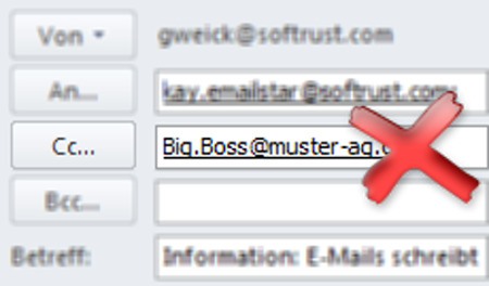 "Wer sich seinen Kommunikationspartnern gegenüber als kompetent und entscheidungsbefugt darstellen will sollte seinen Chef möglichst aus dem Verteiler lassen", sagt Günter Weick, E-Mail-Effizienz-Spezialist von SofTrust Consulting.
