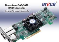 Die neuen Areca ARC-1216/-1226 RAID-Controller bieten bis zu zwei interne oder externe 12 Gbit/s miniSAS HD Anschlüsse für bis zu acht SAS/SATA HDDs oder SSDs.