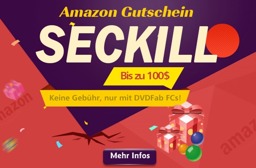 Die FCs, die sie in DVDFab Meta Info Upload Wettbewerb gewonnen haben, können jetzt zum Seckill von dem Amazon Gutschein verwendet werden. Je mehr FCs sie haben, desto höher bewerteten Amazon Gutschein können sie zum Glück erhalten. Diese Runde wird um 9:00 GMT am 06. April stattfinden und dann wird das folgende Seckill zur gleichen Zeit am 1. jedes Monats veranstaltet. Die Beiträger sollte nicht mehr zögern und einfach ihr Glück versuchen!