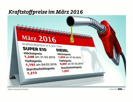 Liter Super E10 verteuerte sich im Vergleich zum Februar um 1,5 Cent
