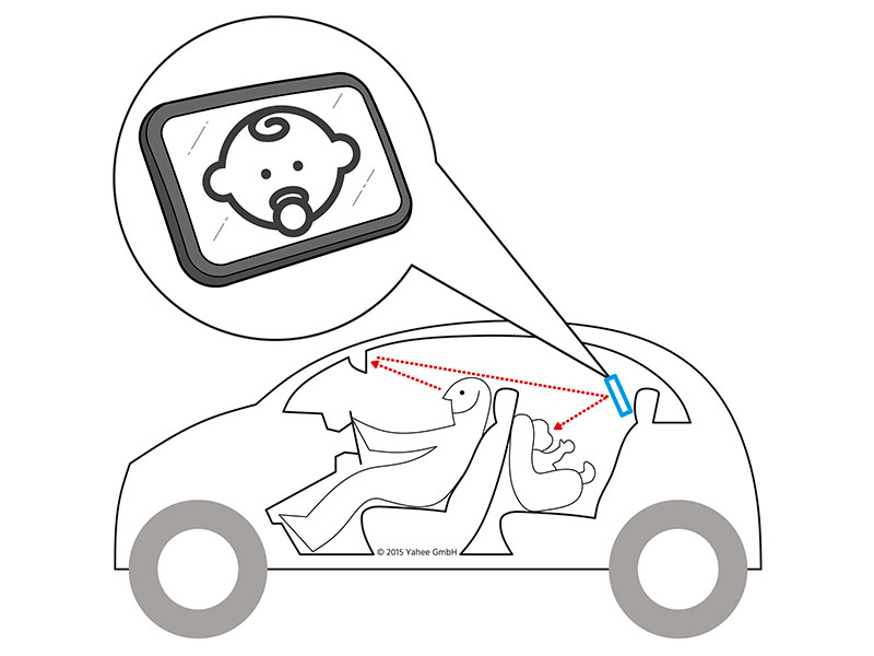 Abhilfe schafft ein Baby-Rückspiegel für unter 15.- Euro aus China
