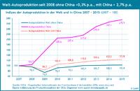 Der Blick auf die Weltautomobilproduktion nach der Weltwirtschaftskrise zeigt ein kontiniuierliches Wachstum. Der Report unterteilt dieses Wachstum in zwei Faktoren, nämlich Weltautomobilproduktion mit China und ohne China.