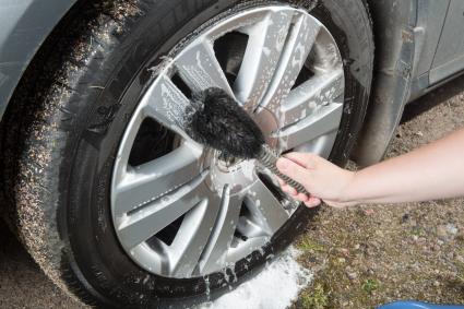 Autowäsche auf dem Programm. Die Felgen - egal ob an Winter-, Sommer-