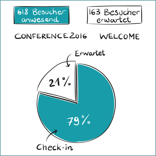 Gleichzeitig mit dem Check-in Prozess führte WELCOME eine Echtzeitstatistik über eingeladene, erwartete und anwesende Besucher. Strichlisten und manuelles Zählen gehören der Vergangenheit an. Autorisierte Personen konnten sich ganz bequem über Smartphones, Tablets und jegliche Devices mit Webbrowser die Echtzeitstatistik anzeigen lassen.
