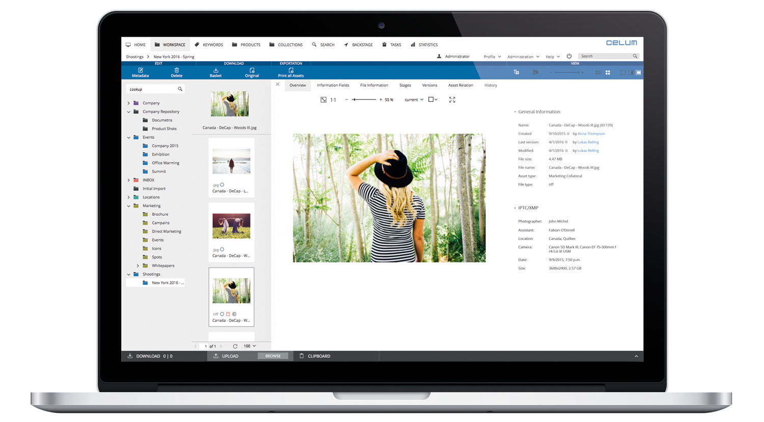 Der IPTC/XMP-Standard liefert eine Reihe von Metadaten-Attributen für die professionelle Beschriftung von Bildern. CELUM 5.12 bildet IPTC/XMP-Feldwerte der digitalen Datei automatisch beim Upload auf Informationsfelder von CELUM ab. Dadurch lassen sich verschiedene Mapping-Sets für IPTC/XMP-Felder einfach konfigurieren und den Asset-Typen in CELUM zuordnen. Dabei können Assets nicht nur über die allgemeinen Informationsfelder, sondern auch sofort über die Werte des IPTC/XMP-Mapping im System gesucht werden.