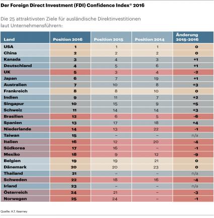 des 16. FDI Confidence Indexes - einer Top 25 Liste der begehrtesten